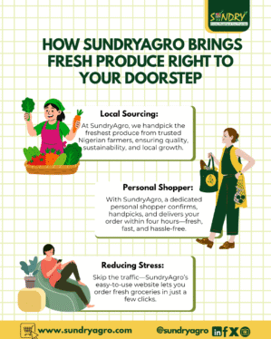 So the next time you’re too busy to stop by the market, don’t compromise on safety. With Sundry Agro, you can shop confidently, knowing that every item is carefully sourced, checked, and delivered with your well-being in mind.
